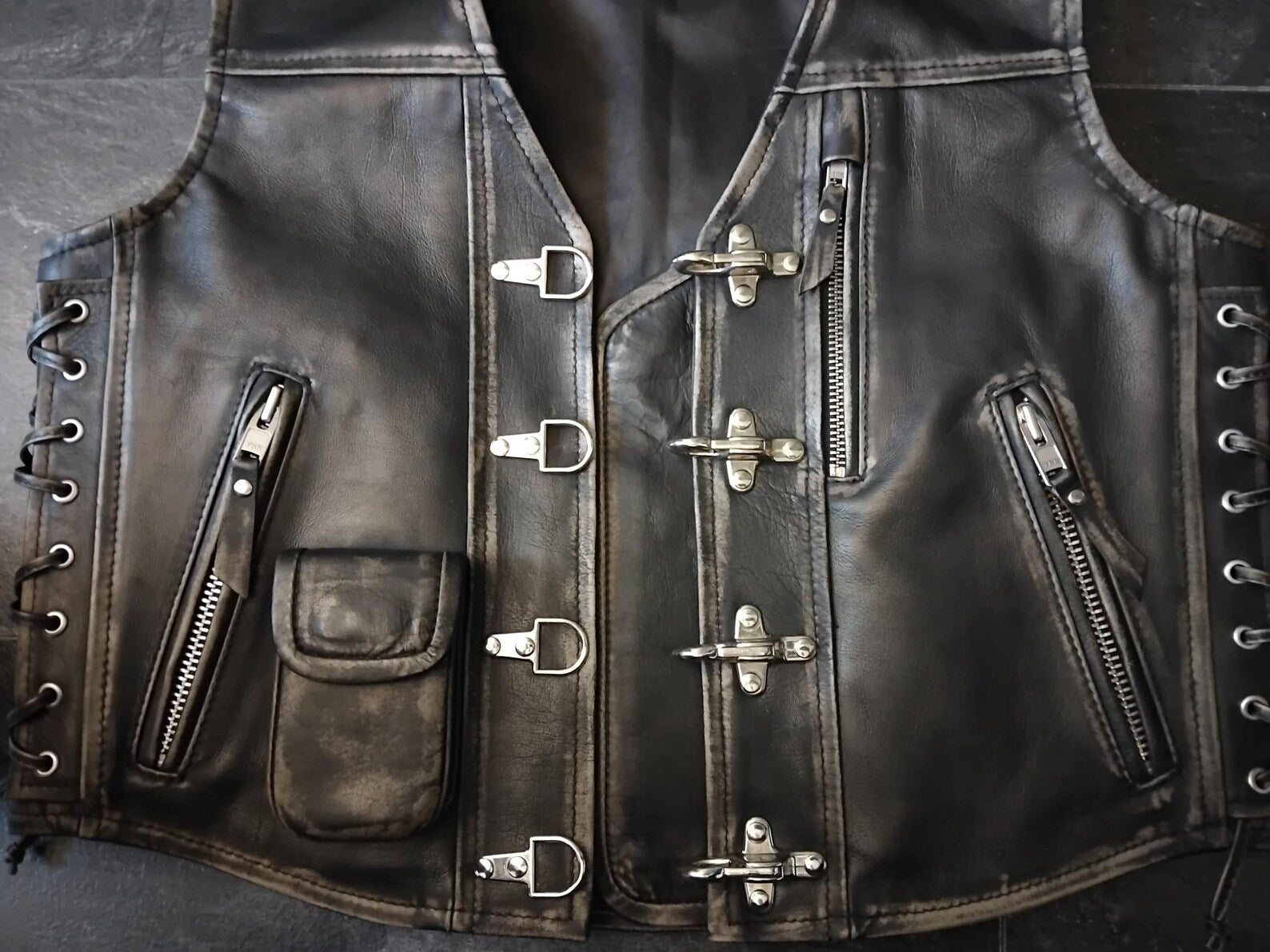 10 POCKET DISTRESSED MOTORCYCLE LEATHER VEST SNAP ZIPPER CONCEALED CARRY POCKETS S-6XL