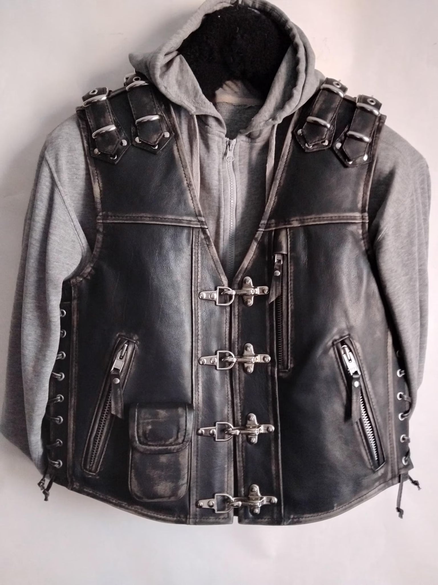 BLAZING FLAMES Men's Buckled Heavy Cowhide Leather Vintage Distressed Motorcycle Biker Concealed Carry Leather Vest