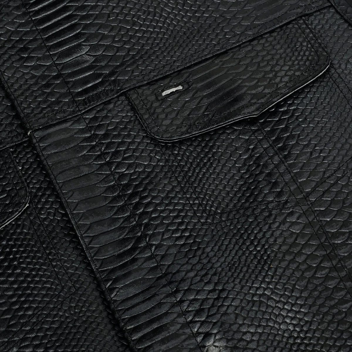 - Complete Outer Shell Made with Premium Leather, Snake Effect in Grey/Black