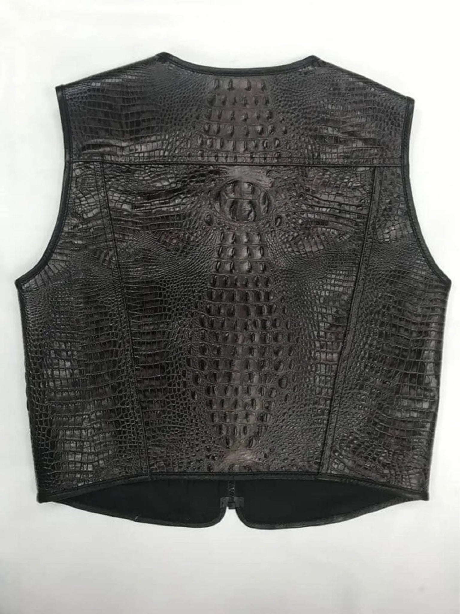 Gator Embossed Men's Black Alligator Motorcycle Concealed Carry Leather Vest