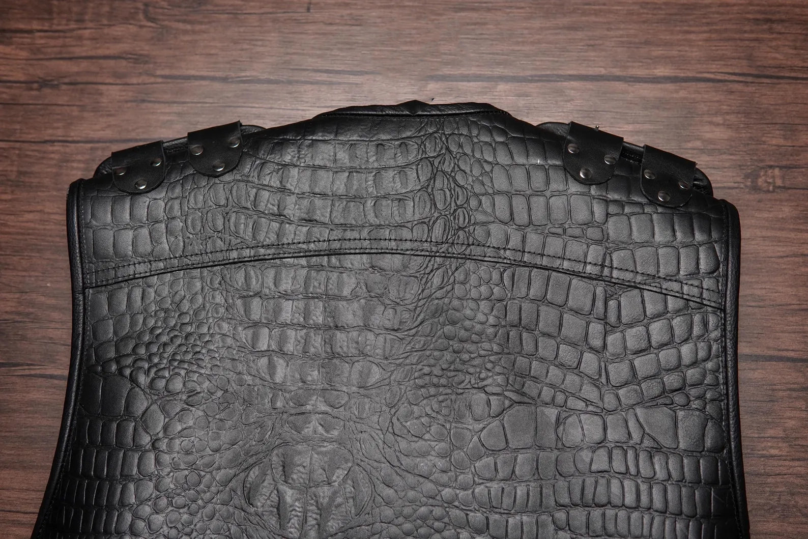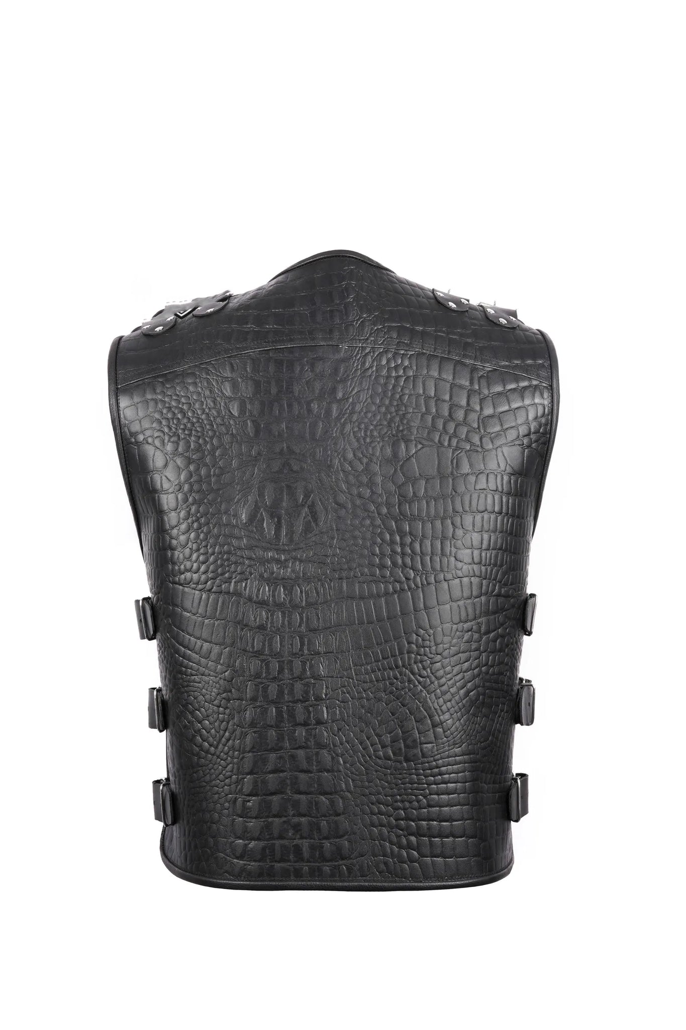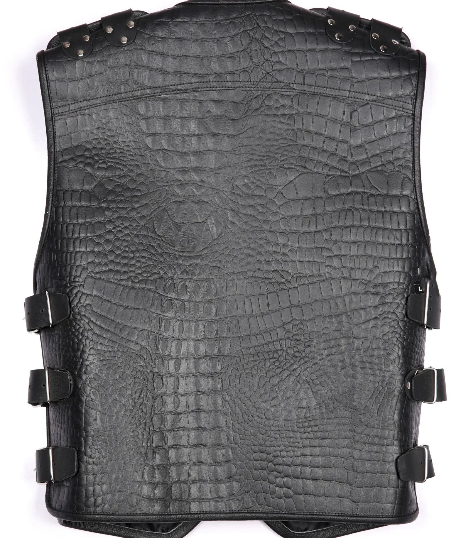 Gator Embossed Men's Heavy Buckle Motorcycle Concealed Carry Leather Vest