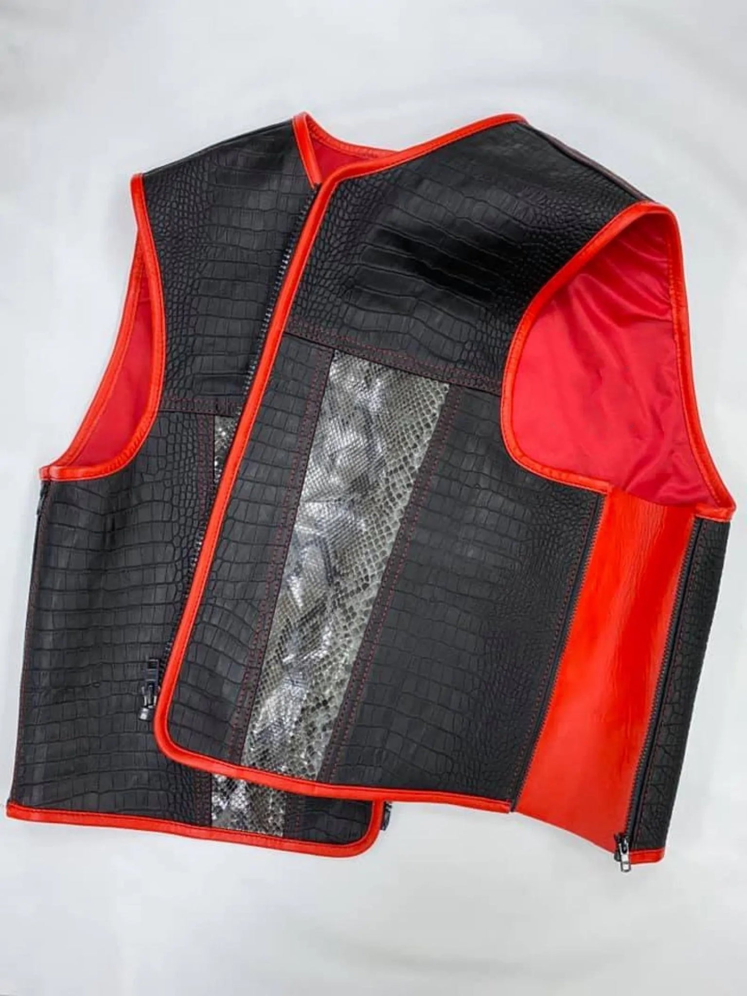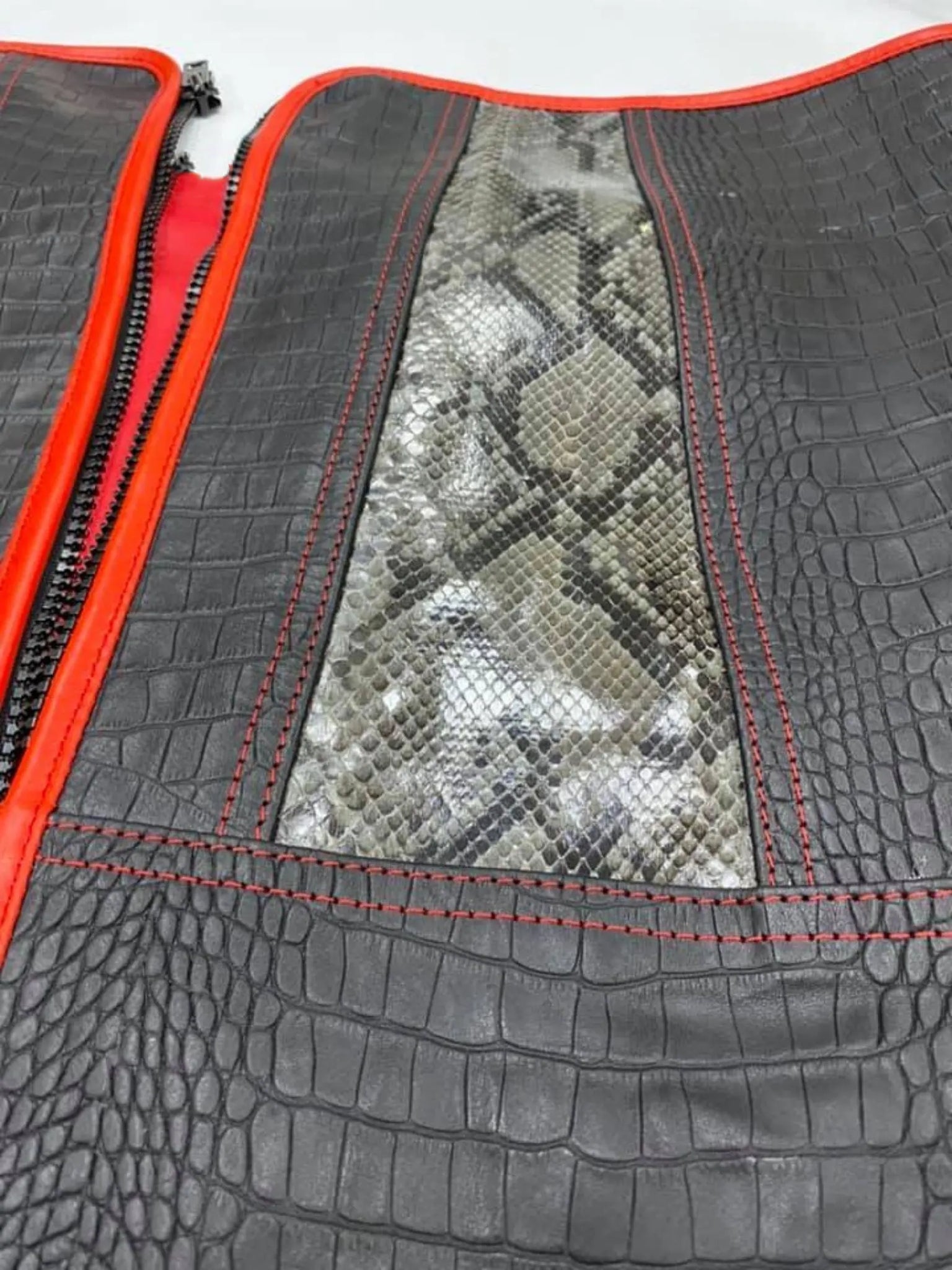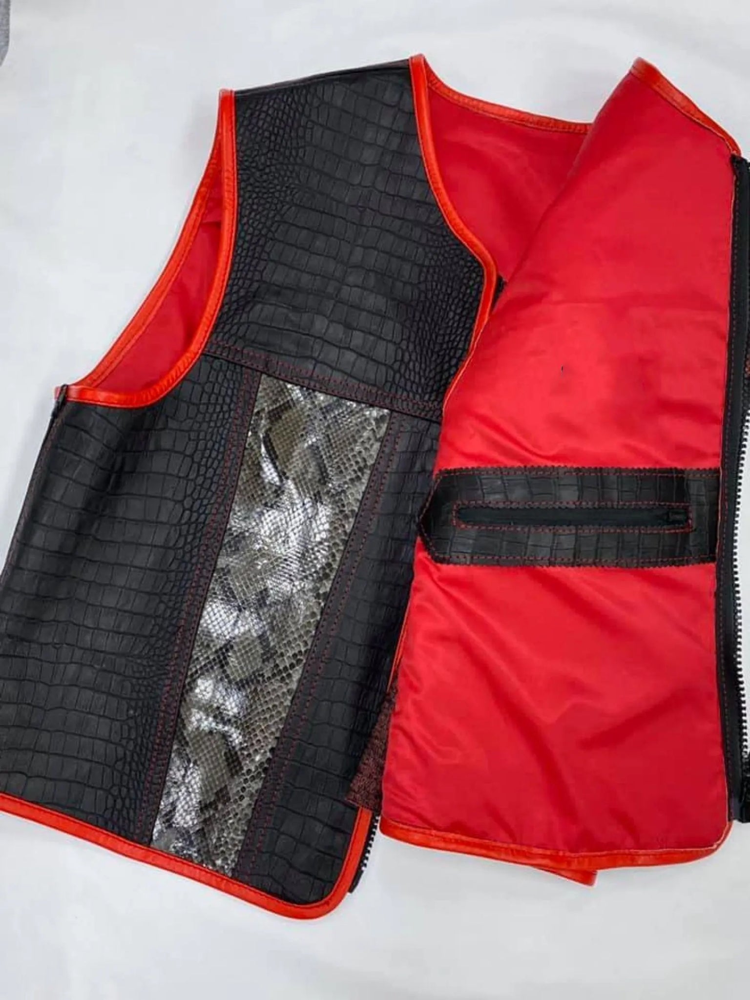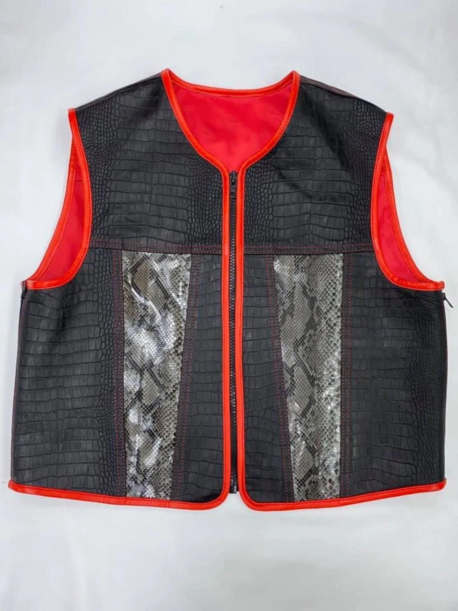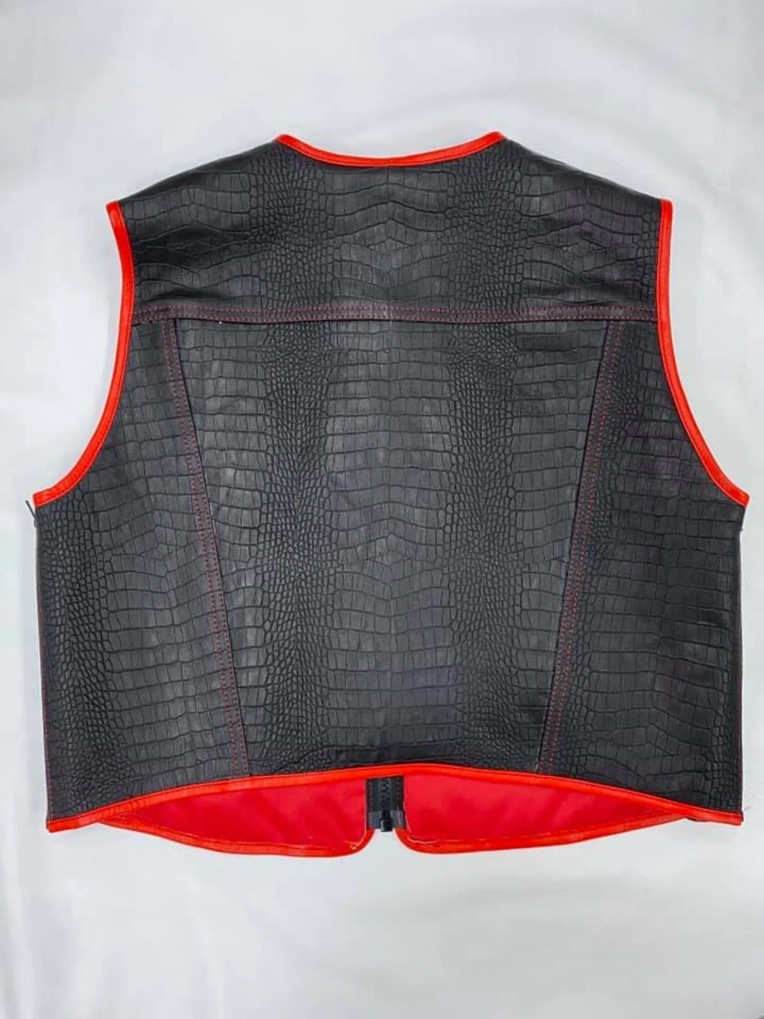 Gator Embossed Men's Snake Patterned Motorcycle Concealed Carry Leather Vest