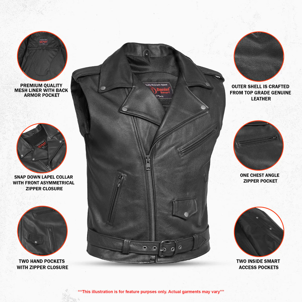 Highway Legend Men Motorcycle Biker Leather Vest Concealed Carry