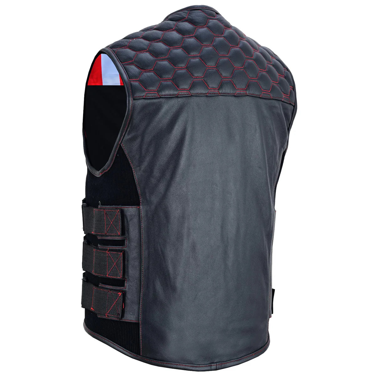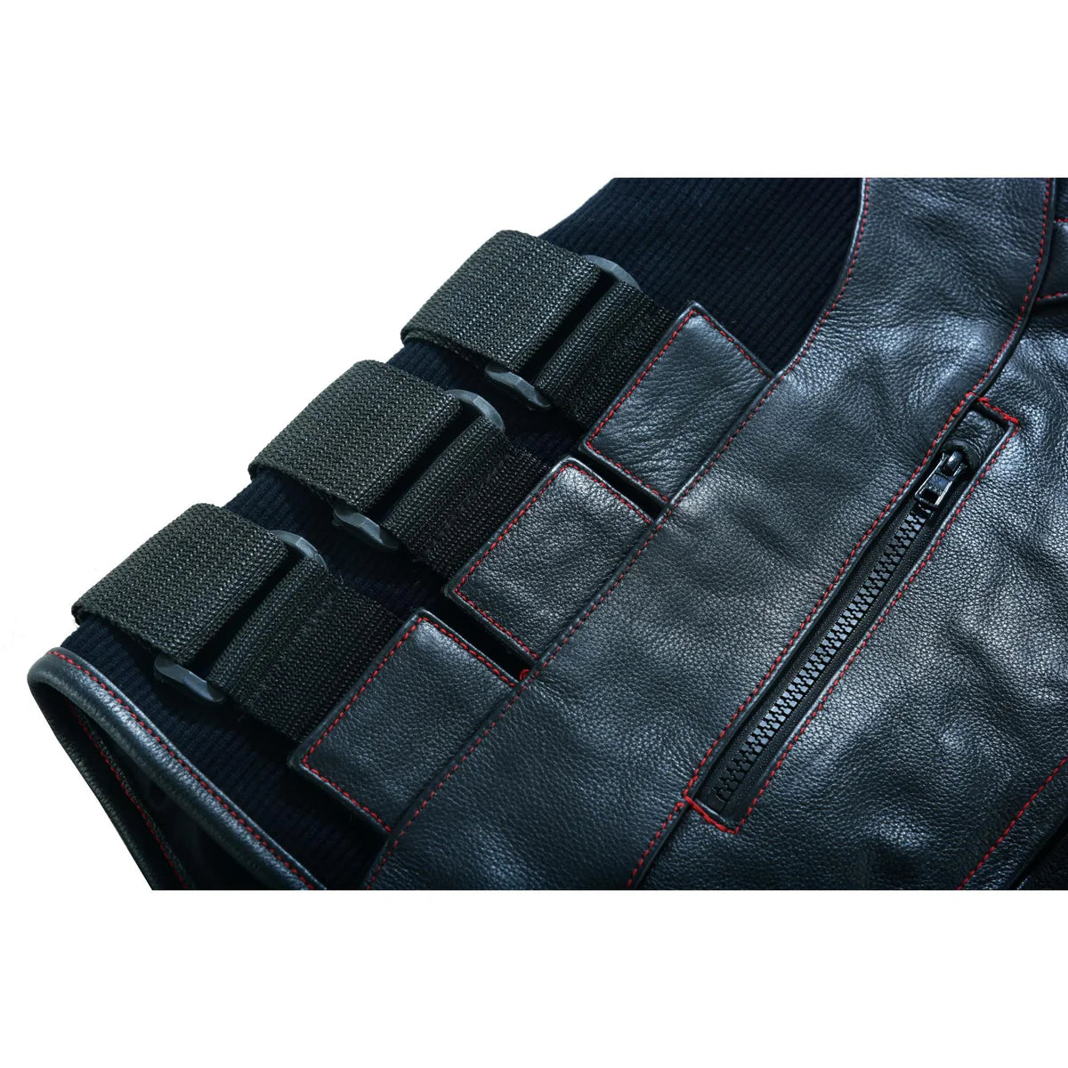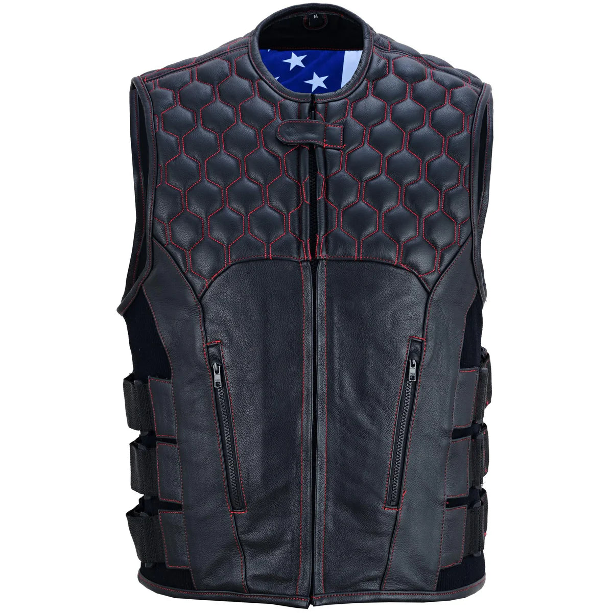 Patriot Wheels Men Padded Motorcycle Biker Leather Vest Concealed Carry