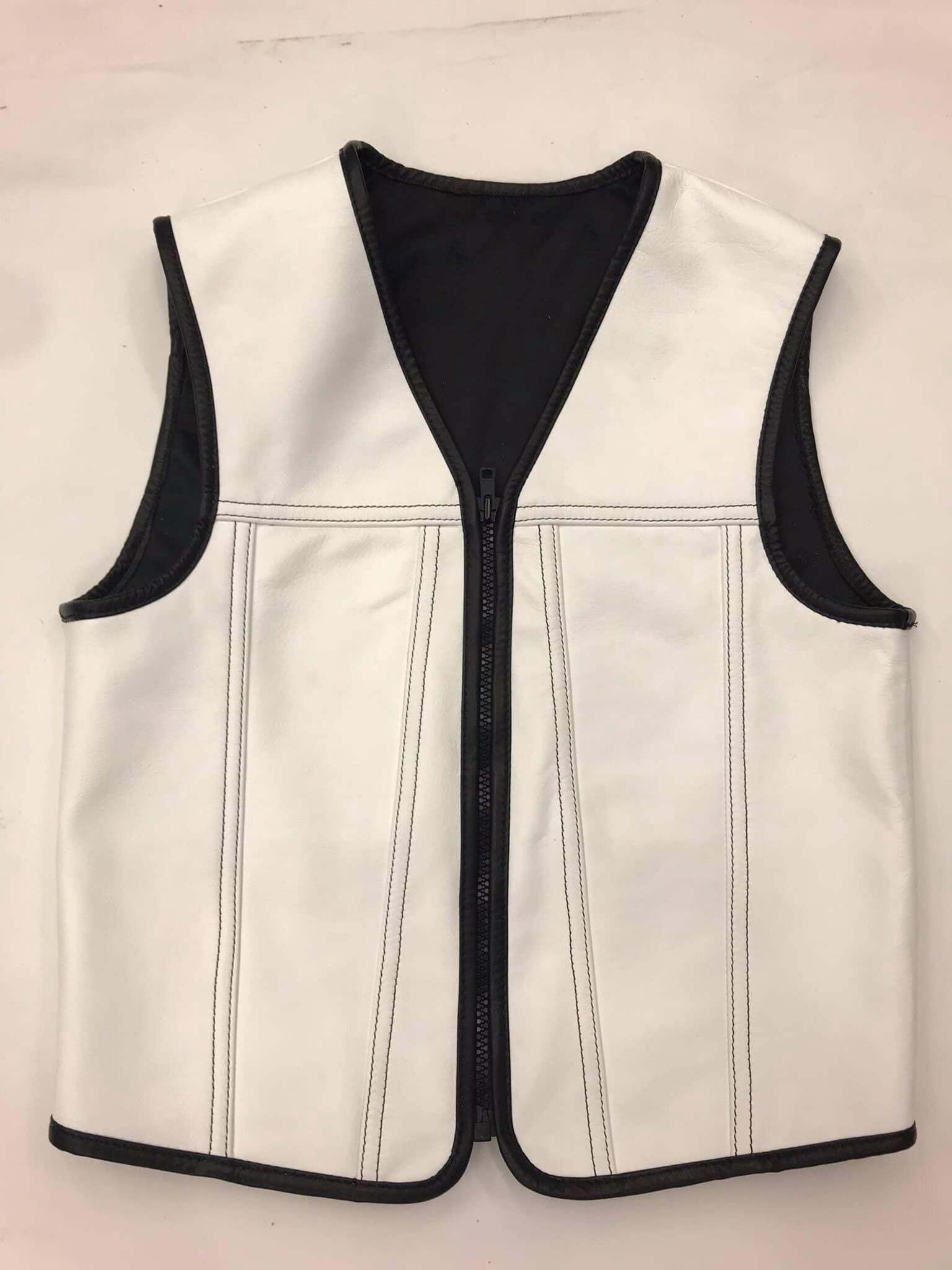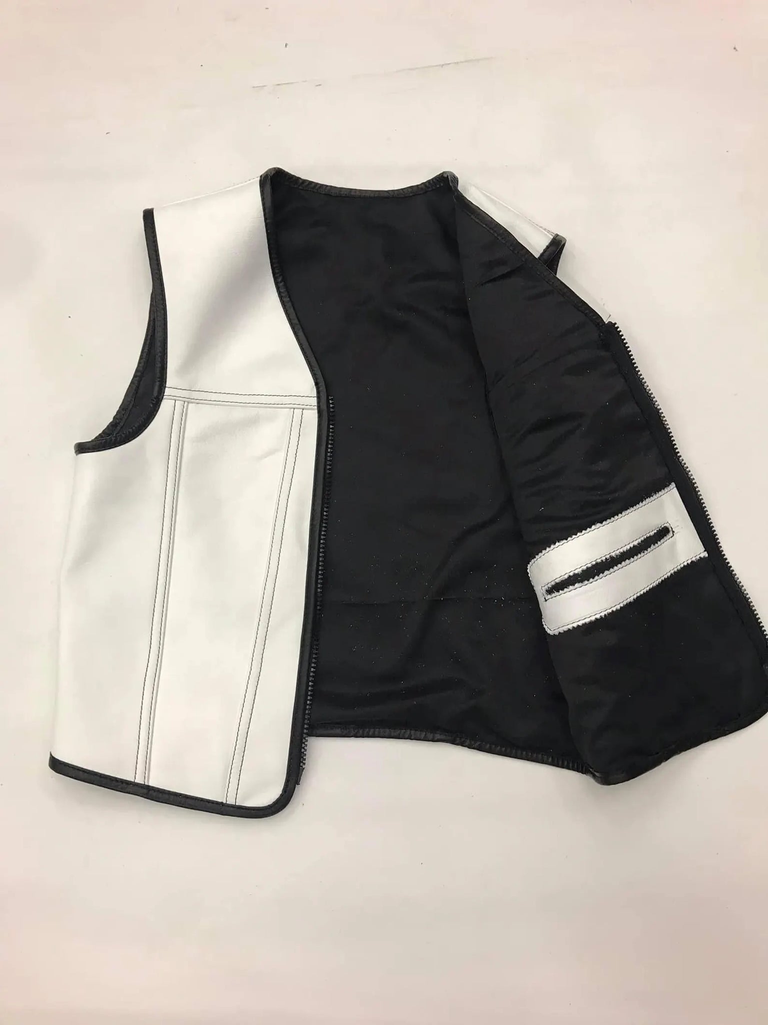 Men's Classic Zippered Biker Style White Motorcycle Leather Vest