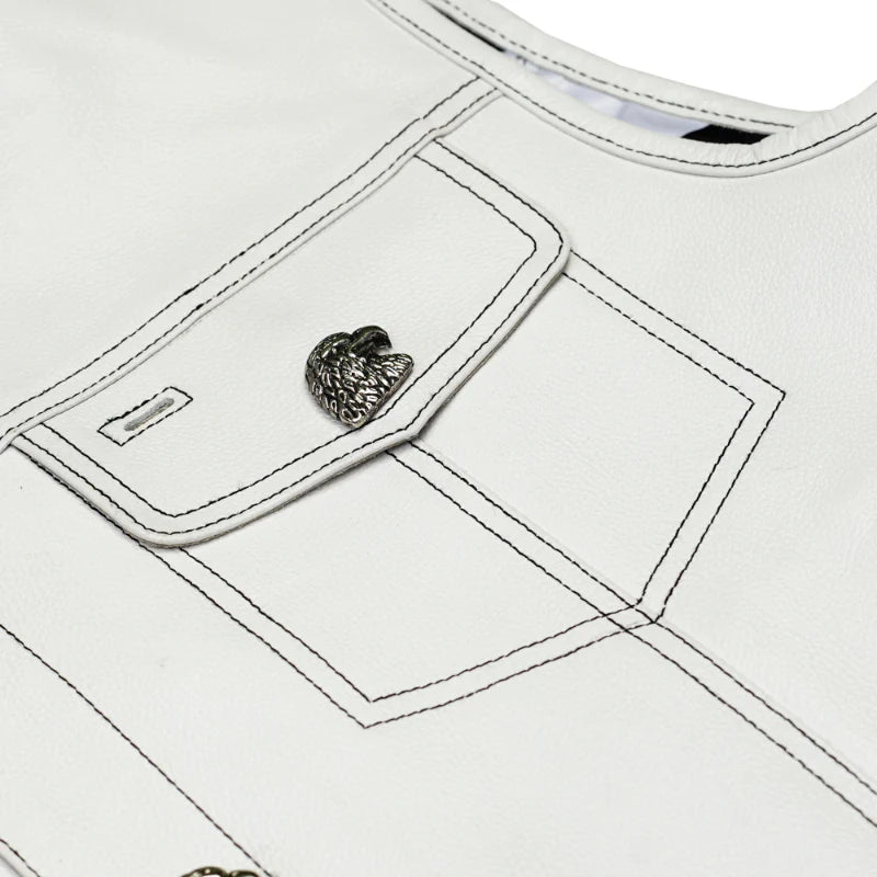 - Eagle-engraved buttons on the chest and front enhance classic biker aesthetics.