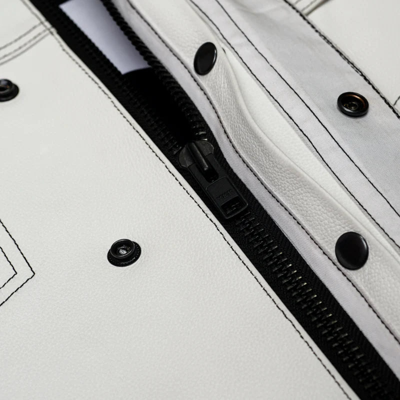 - Complete outer shell made from premium white leather for a standout, clean finish.