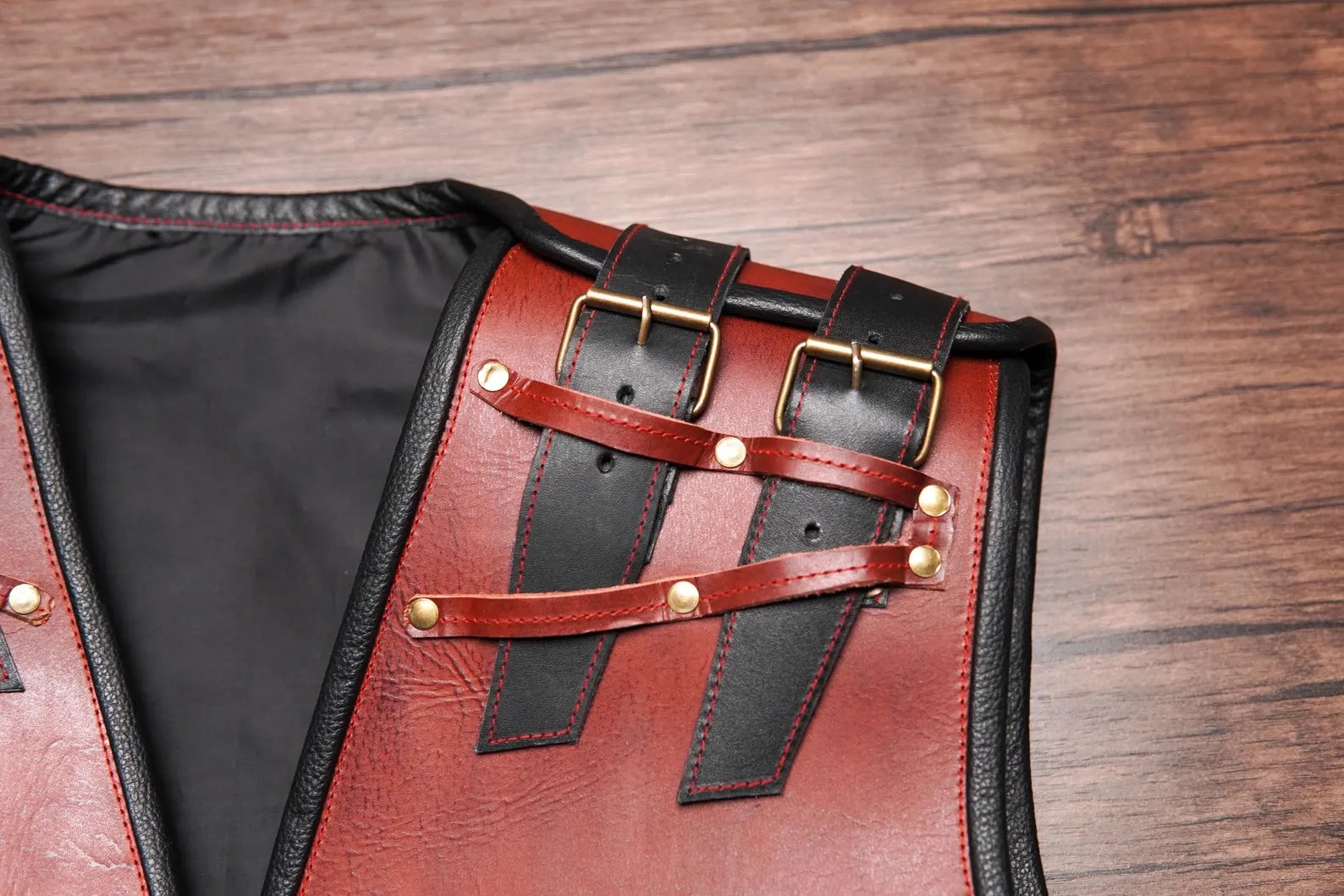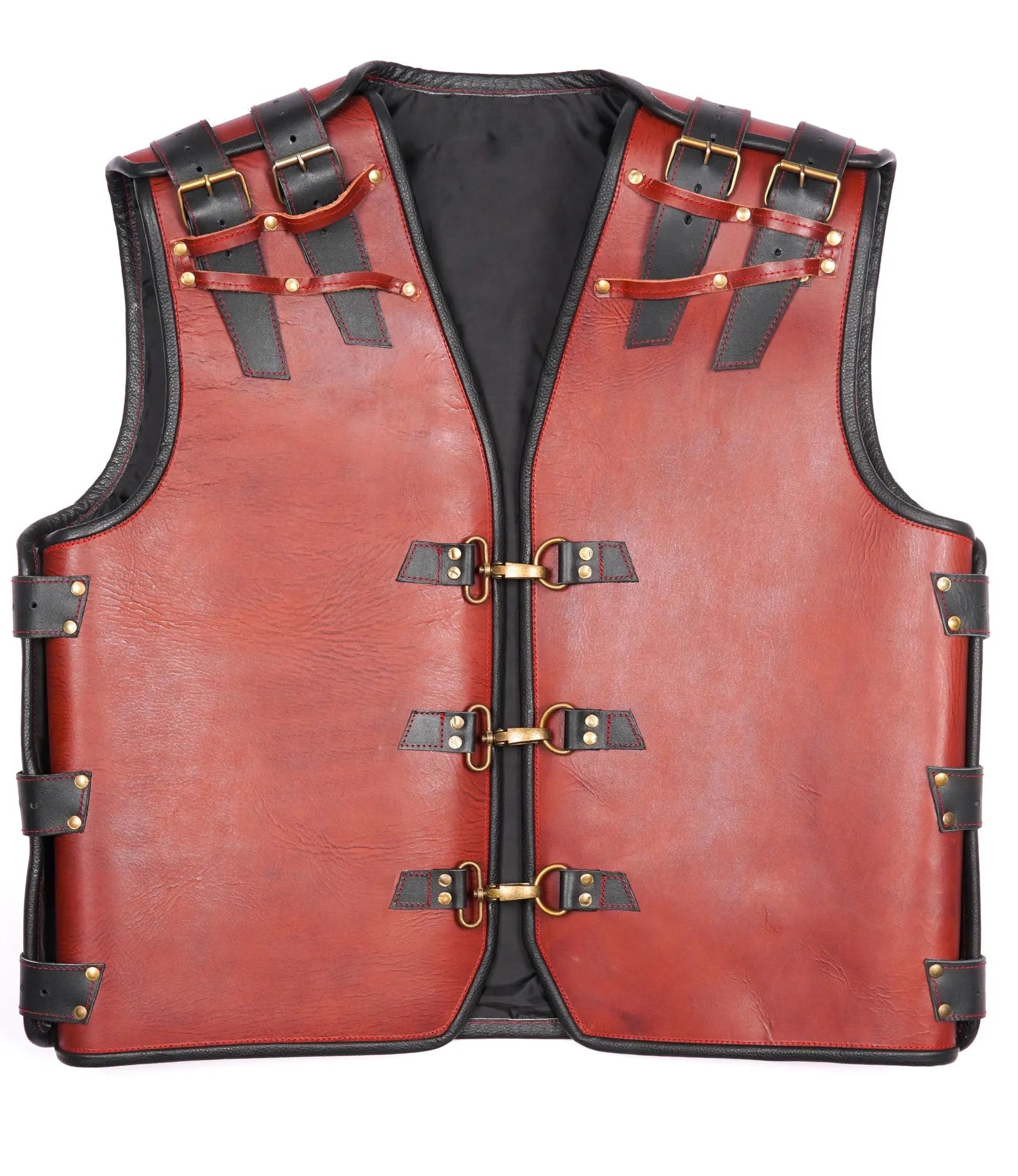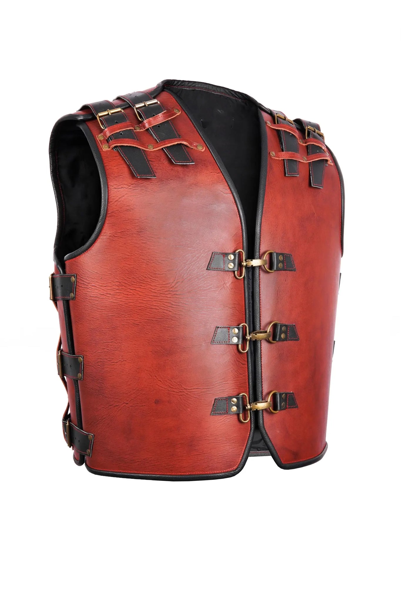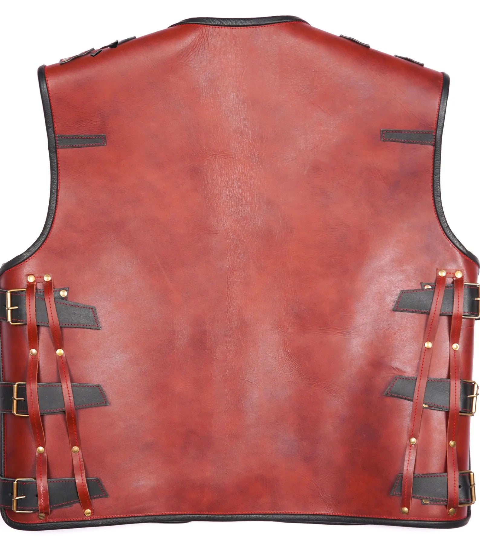 Men's Heavy Buckles Thick Cowhide Leather Motorcycle Biker Concealed Carry Leather Vest