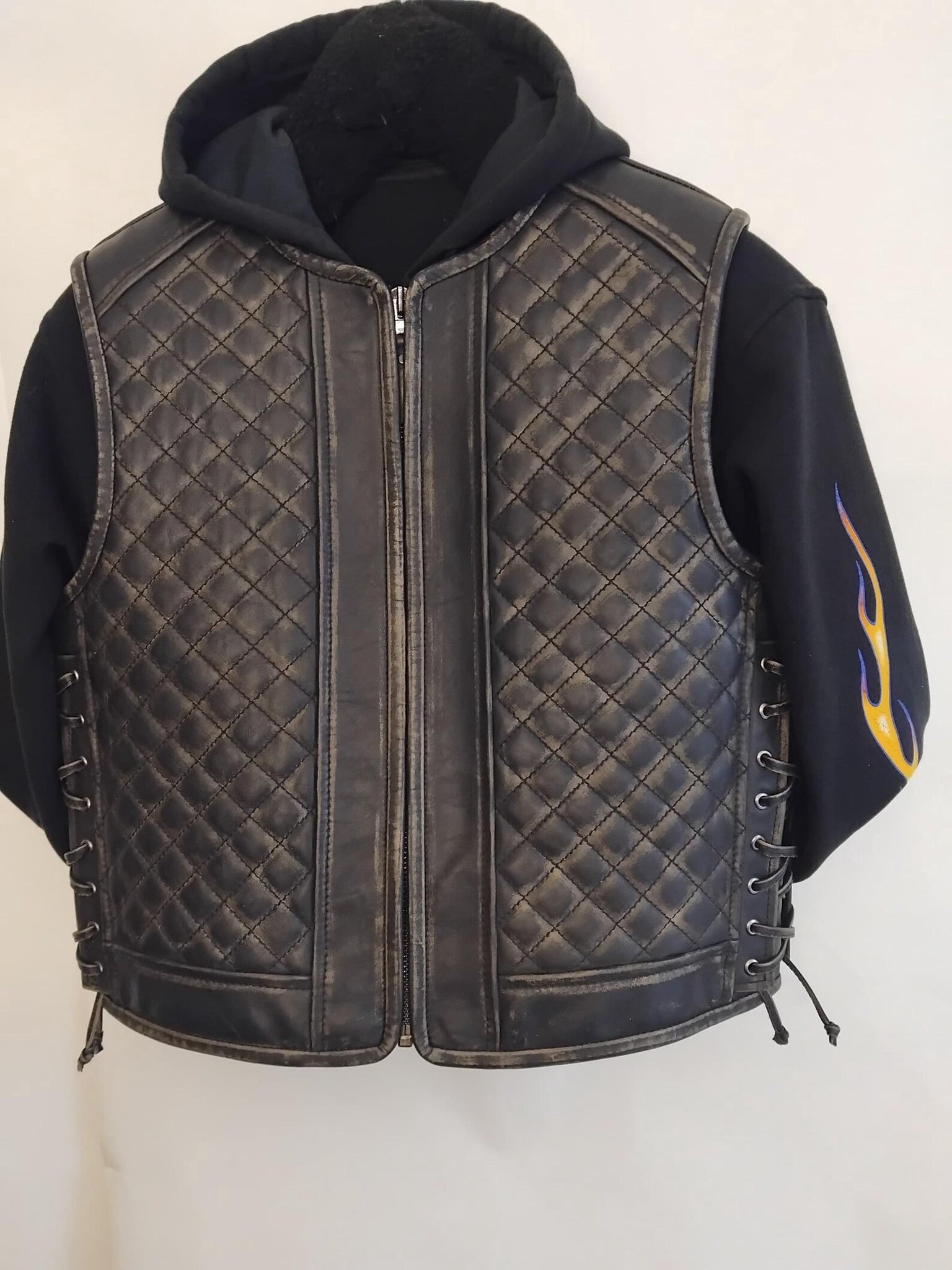 Patch Vest Men's Zippered Padded Motorcycle Concealed Carry Biker Leather Vest W/ Antique Abrasion Effect
