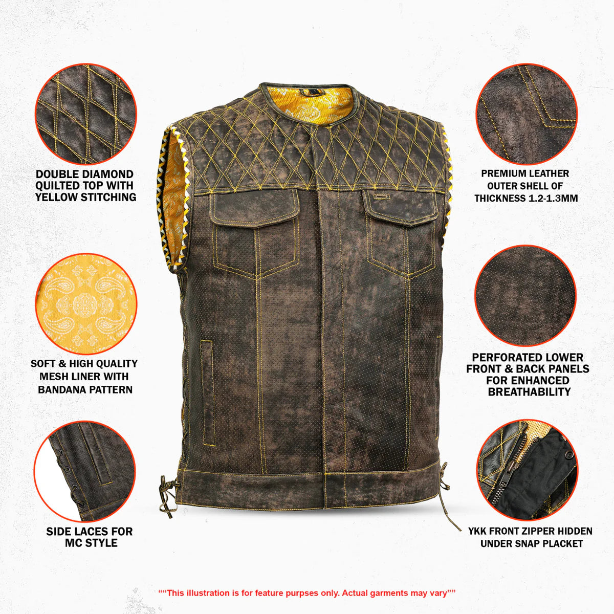 Rust Rider Men's Perforated Distressed Leather Vest Concealed Carry