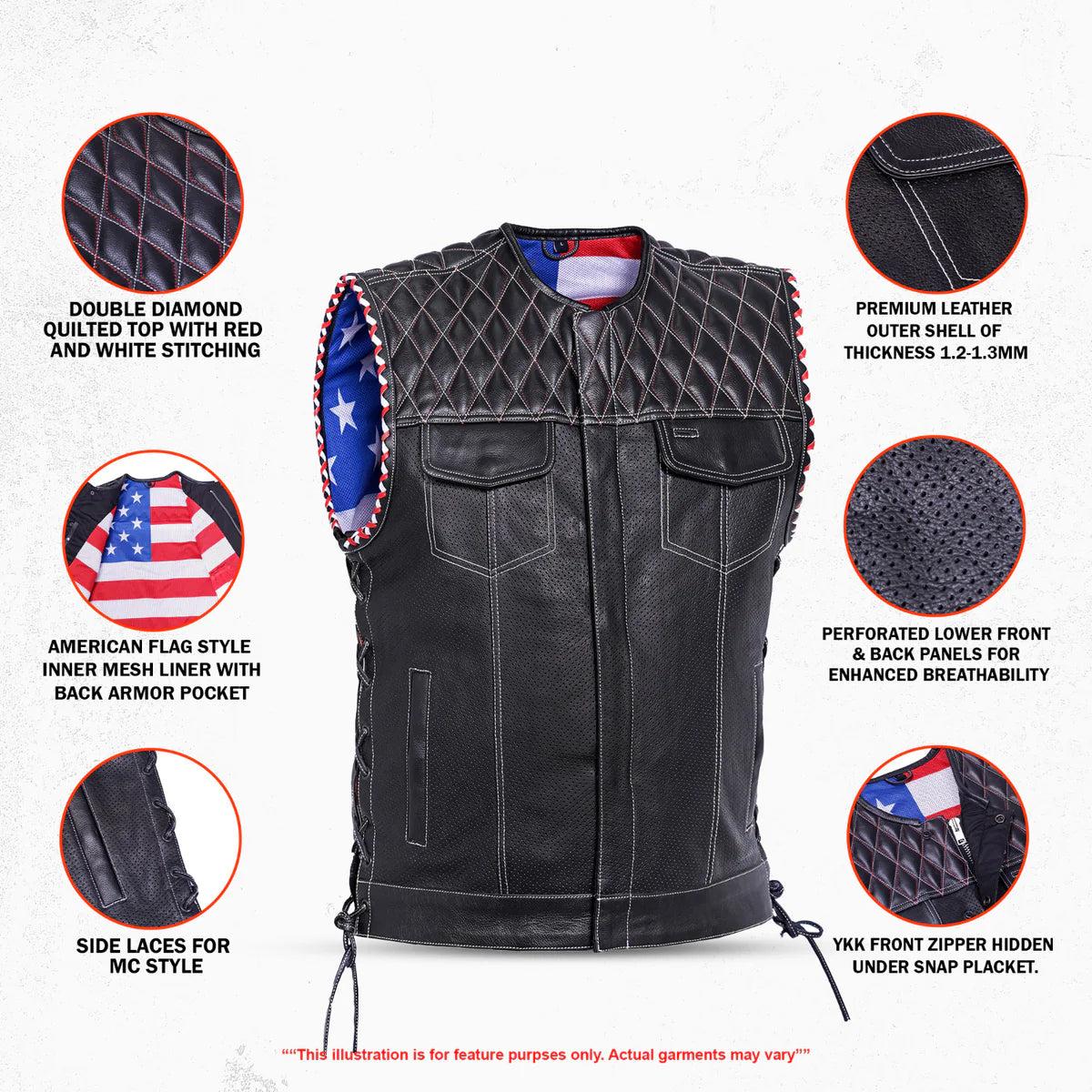 Star Shield Men's Perforated Padded Leather Vest Concealed Carry